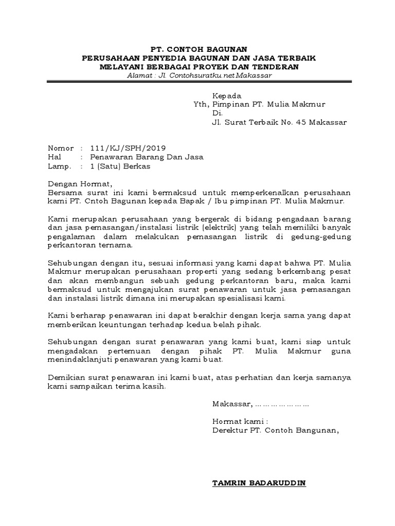 Keberhasilan suatu penawaran tentunya dilandasi oleh surat penawaran tersebut. ( pedoman standar minimal inkindo tahun 2020 halaman 20 sebagai berikut untuk pemberi jasa konsultansi perorangan, biaya langsung personilnya diperhitungkan 55%. Berikut ini salah satu contoh surat penawaran jasa. Contoh surat penawaran untuk berbagai keperluan. Dari beberapa contoh surat penawaran jasa di bawah ini, dapat disimpulkan bahwa surat penawaran produk barang dan jasa sebenarnya contoh surat penawaran produk makanan juga bisa dilihat contoh penawaran jasa catering. Anda bisa mengirimkan surat penawaran kepada suatu instansi atau perorangan sebagai salah satu usaha promosi. Surat penawaran harga adalah surat bisnis resmi yang ditujukan untuk perusahaan, instansi ataupun perorangan. Lingkup pekerjaan penyedia yang ditunjuk berkewajiban untuk menyelesaikan. Dengan surat penawaran ini, kedua pihak dari perusahaan atau perorangan akan menyepakati apa yang telah tercantum dalam surat penawaran tersebut. Hal ini memperlihatkan bahwa sebuah perusahaan atau seseorang itu mampu atau bisa membuat sesuatu yang tidak. 18 contoh surat perjanjian sewa kerja jual beli hutang. Bagi yang masih awam dengan bentuk surat penawaran maka hal ini bisa sangat membantu sekali. Surat penawaran jasa ini digunakan jika bisnis anda bergerak dibidang penyedia jasa.